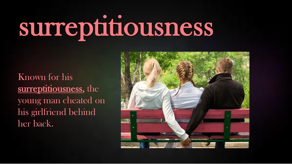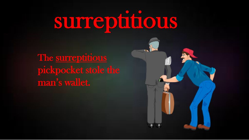 surreptitious [서럽티셔쓰]는 어원을 따지면 sub + rapid 로 구성된 단어다. '밑에서 빠르게'라는 뜻이므로 은밀히라는 뜻이 된다. 위의 이미지 두 장이 모든 걸 설명한다. 몰래하는, 부정한의 느낌이다.